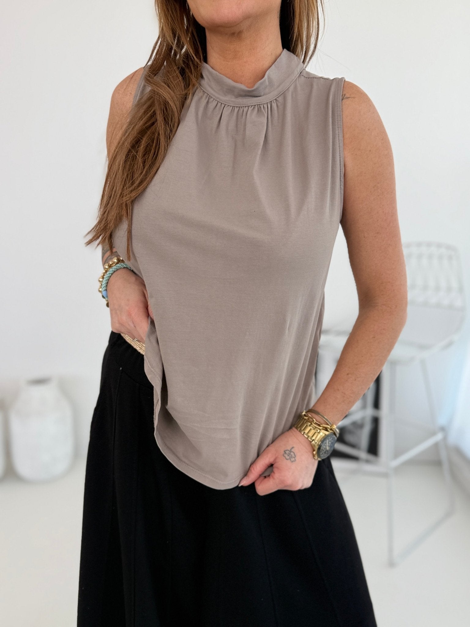 Gerafft am Halsausschnitt