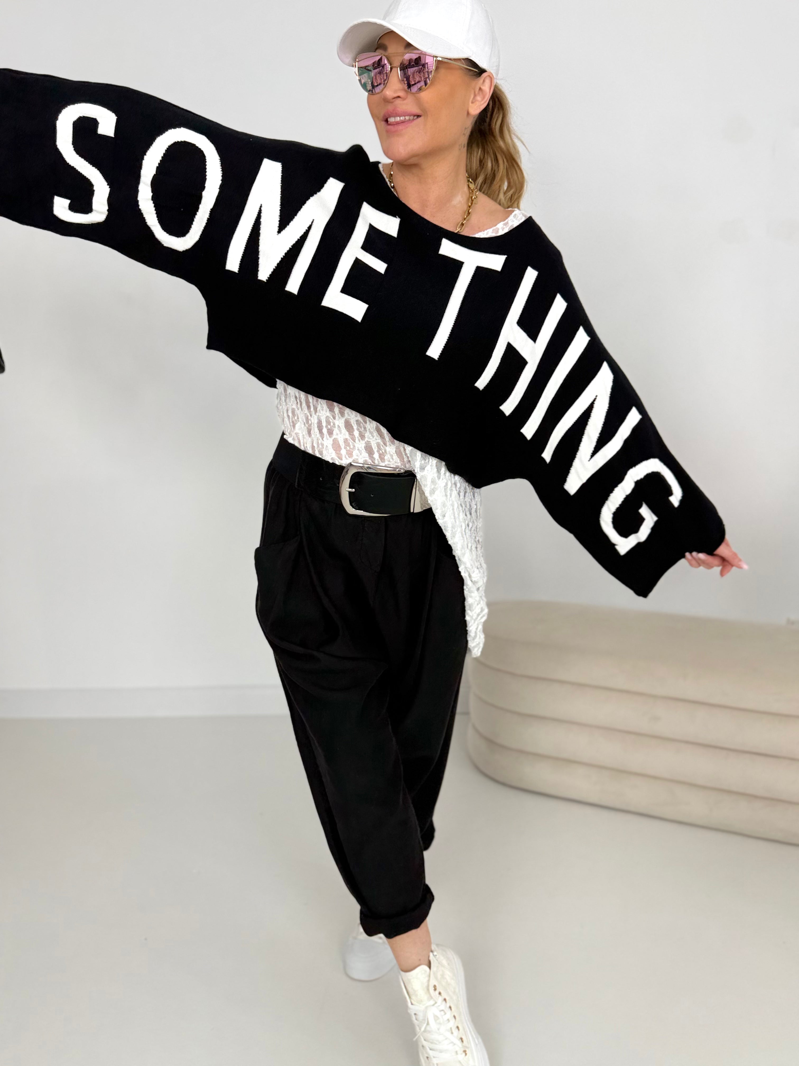 Strick Schrift über Arme und Vorderteil