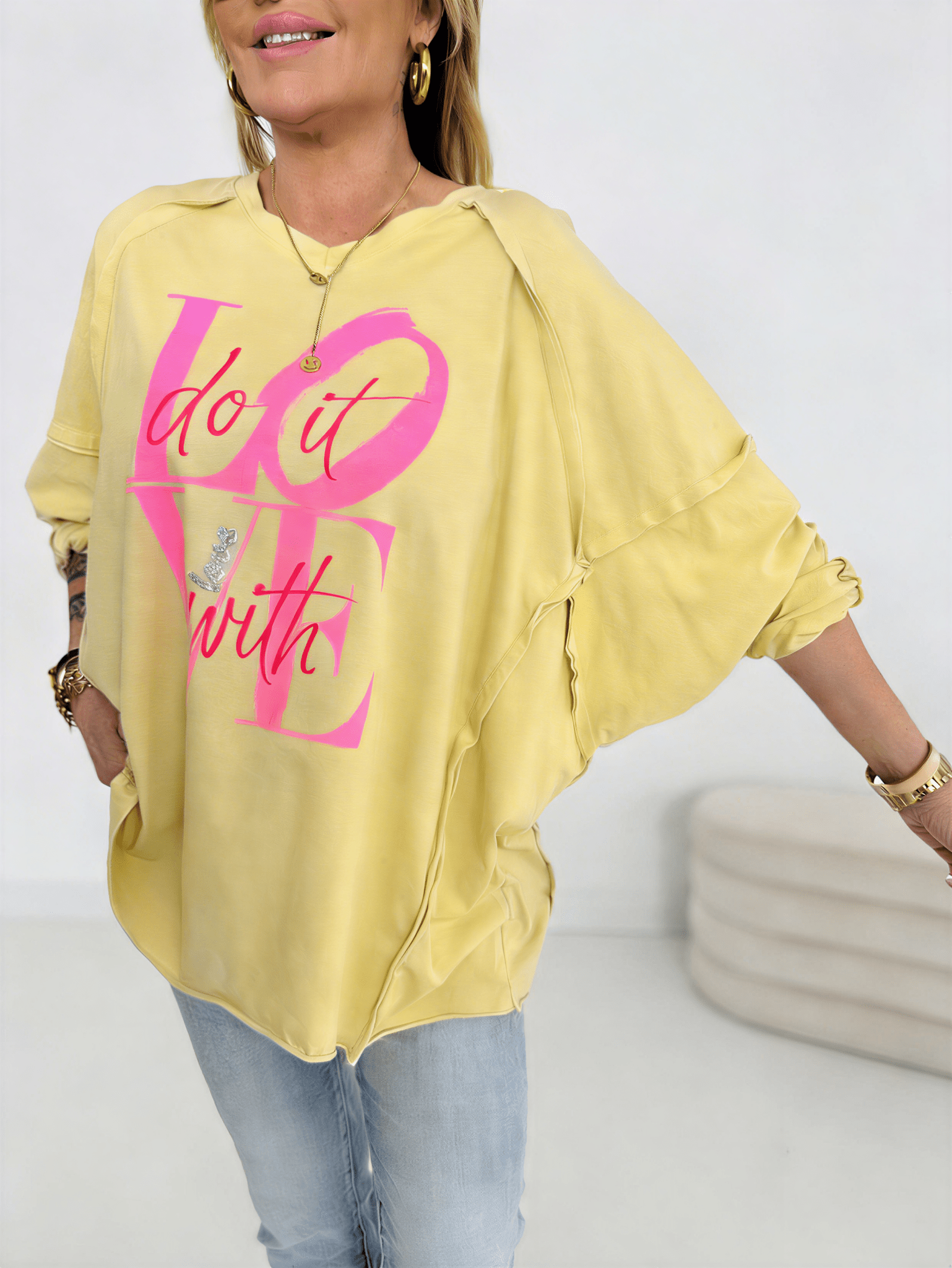 Das Model hat die Konfektionsgröße 38 (1,70m)